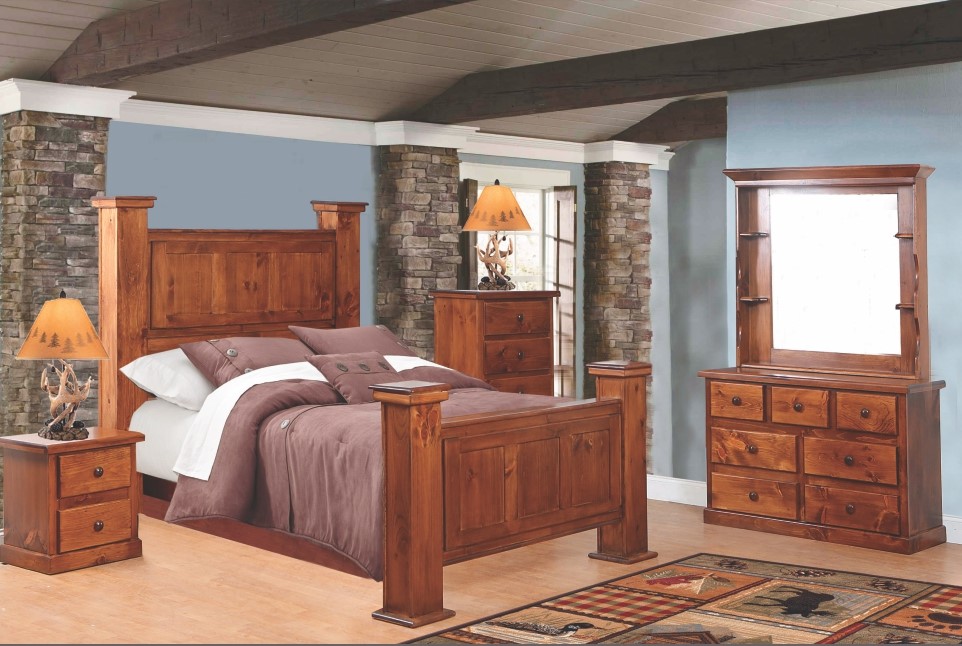 Solid wood construction. Rugged beauty for your bedroom. Hidden gun storage in the headboard and footboard. Sold in king and queen. BED ONLY. Bed set includes headboard, footboard, and rails. Bed may be purchased along with matching bedroom set. AVAILABILITY VARIES DAILY.Read More