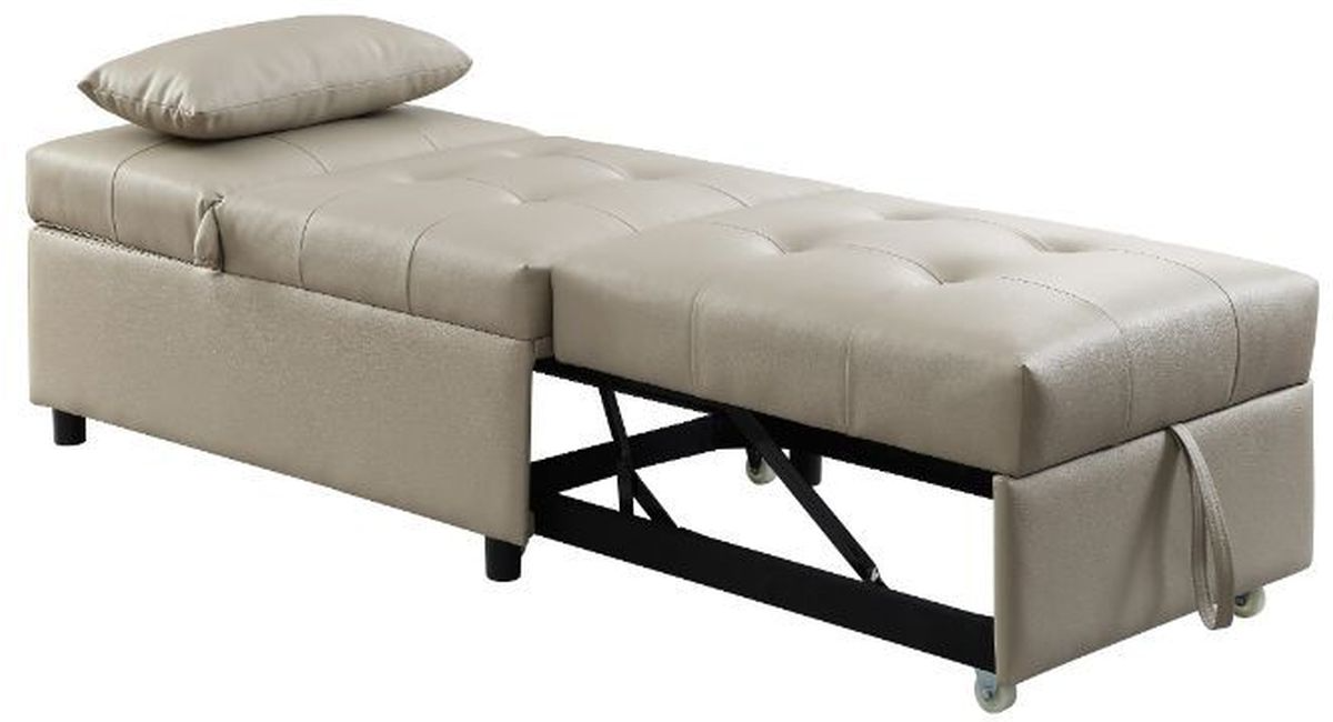 Let it's clever design create a flexible and versatile living space in your home. This stylish single sofa bed features full upholstery and pull-out sleeper . Adjustable mechanism makes it easy to transform the sofa into a cozy sleeping space, with the full foam seat construction and button tufted back for comfortable support. An included soft pillow adds extra comfy as sleeping on this sofa. AVAILABILITY VARIES DAILY.Read More