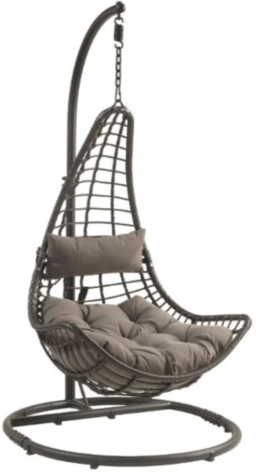 The ACME Furniture Uzae Gray Fabric & Charcoal Wicker Patio Hanging Chair with Stand features a metal stand with a wicker chair. AVAILABILITY VARIES DAILY.Read More