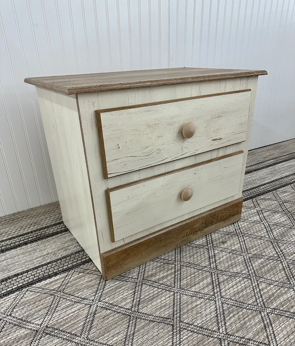Two-drawer nightstand in Aspen House finish. AVAILABILITY VARIES DAILY.Read More