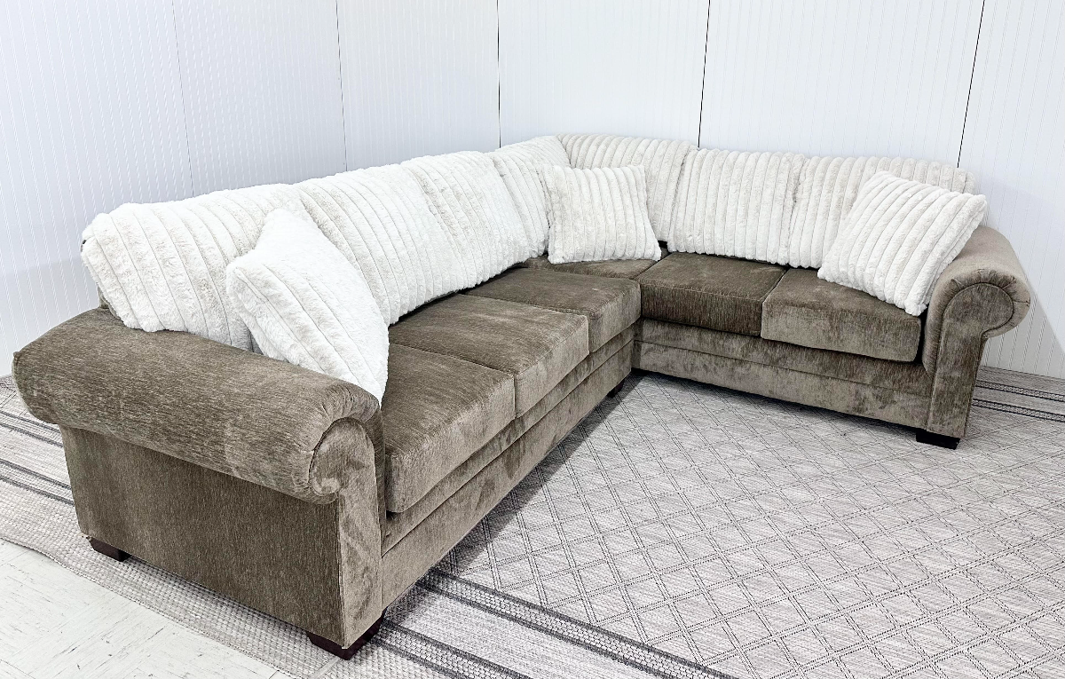 Just what you're looking for in a plush sectional! This beauty features soft pillows, luxurious fabric, and an affordable price. The sectional includes a left-arm-facing loveseat and a right-arm-facing sofa. Sold as a sectional set only. AVAILABILITY VARIES DAILY.Read More