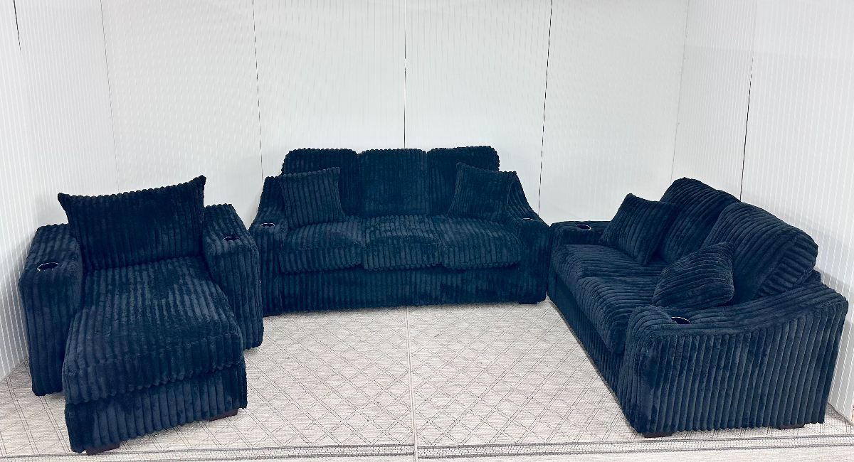 Cozy up to this beautifully luxurious living room set. With a plush color that complements any space, this easy-living set will quickly become the place to gather. Sold as a set only. Set includes sofa, loveseat, and chaise. AVAILABILITY VARIES DAILY.Read More