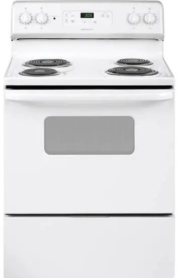 30" white electric range, coil top. The range is freestanding with a 5.0 cubic foot oven capacity. Functional and efficient! AVAILABILITY VARIES DAILY.Read More