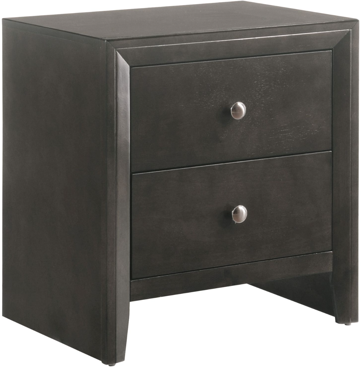 Reach your design goals in your bedroom with this Evan Nightstand from Crown Mark. This features a Grey finish. Incorporate this into your rest area to give your space a refined touch. NIGHTSTAND only. Sold in bedroom set only. Bedroom set includes bed (headboard/footboard and side rails), dresser with mirror, chest, and nightstand. AVAILABILITY VARIES DAILY.Read More