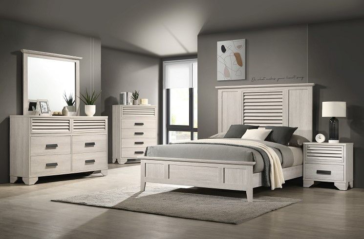 The Sarter Collection Panel Bed is a stylish and elegant furniture piece that exudes a sense of sophistication. With a pristine white finish, this bed not only adds a touch of modernity to your bedroom but also creates a serene and calming atmosphere. The bedroom set includes bed (headboard, footboard, and side rails), dresser with mirror, chest, and nightstand. AVAILABILITY VARIES DAILY.Read More