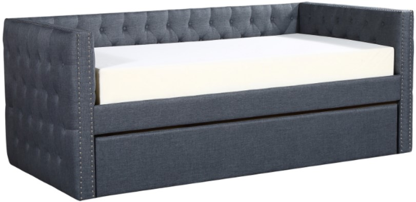 Create an inspired, dreamy retreat with Trina Daybed. It features sides and back tufted button with a double row of nailhead trim for a chic look. This daybed offers a relaxing, comfortable sensation in your room with a beautiful grey upholstery. AVAILABILITY VARIES DAILY.Read More