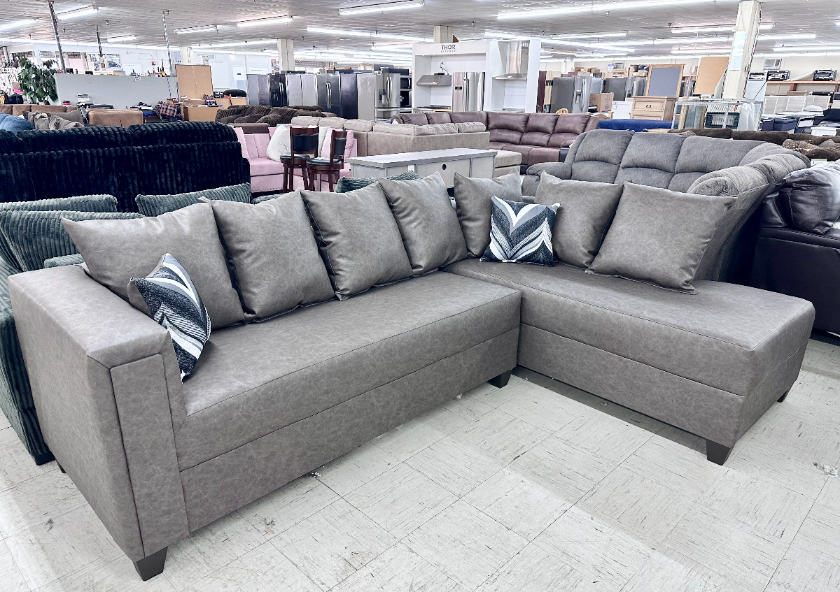 Faith Furniture 2-piece sectional in Amarillo Stone. Enjoy the comfort of room to relax with this sectional. This sectional is a must-see for functionality and affordability! Sold in sectional set only. Set includes RAF chaise and LAF sofa. AVAILABILITY VARIES DAILY.Read More