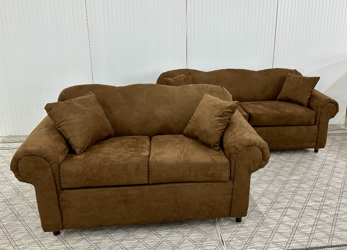 Faith Camelback Sofa and Loveseat Set in Sienna Chocolate
