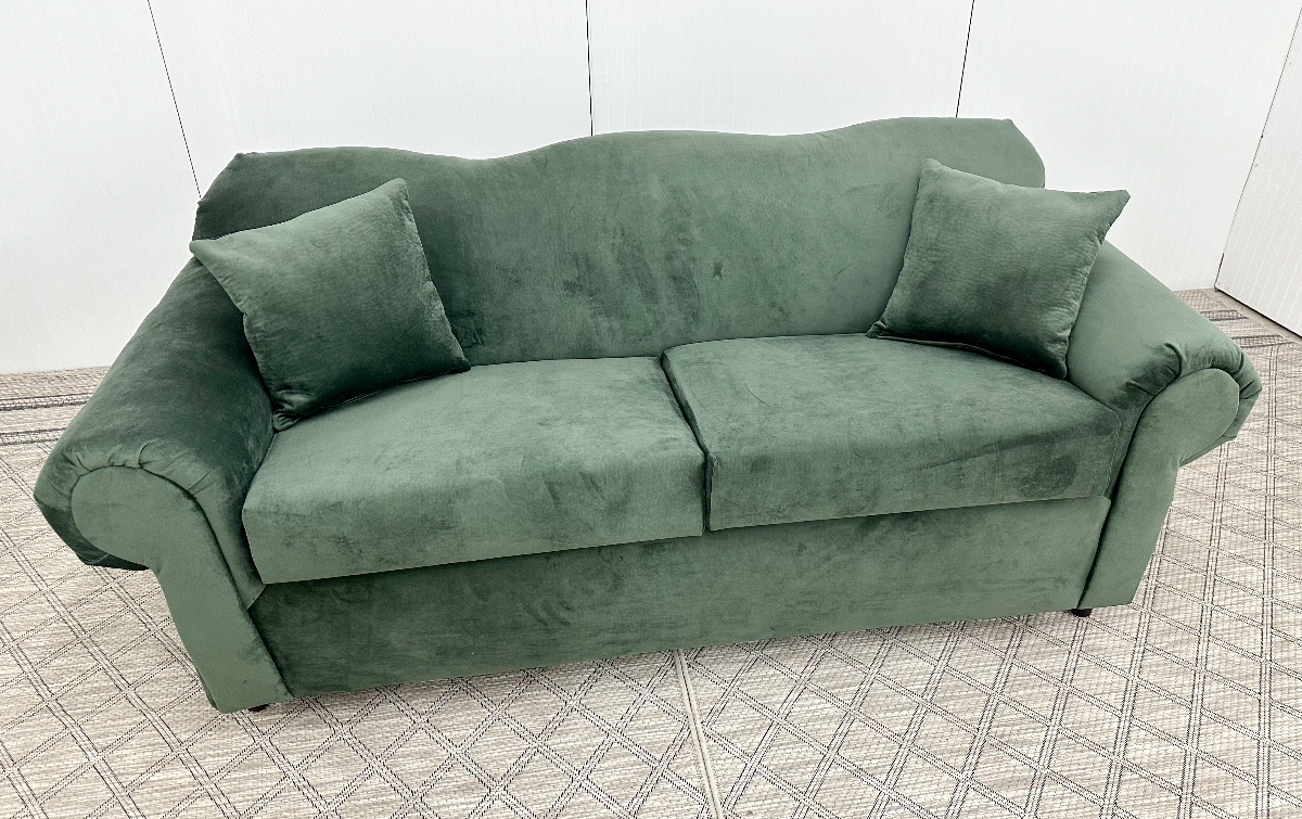 Faith Camelback Sofa and Loveseat Set in Sienna Green
