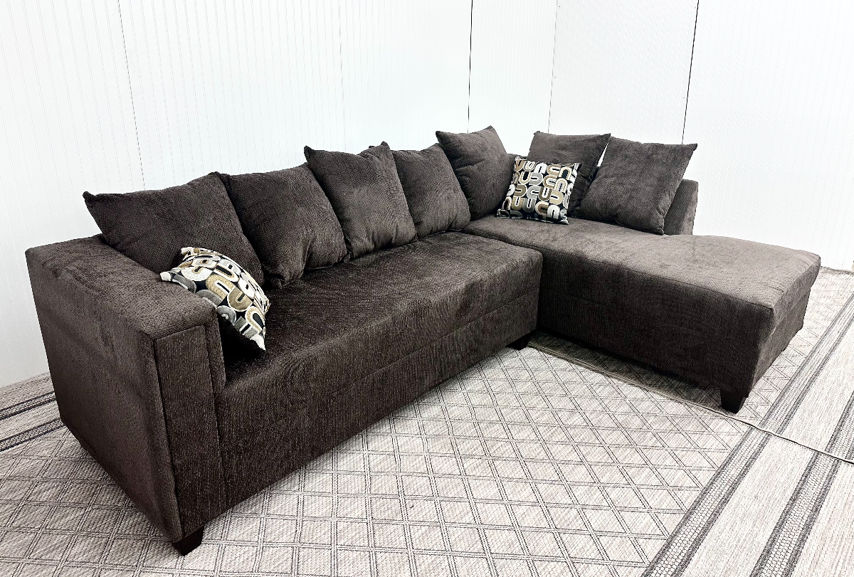 Faith Furniture 2-piece sectional in Charleston Chocolate. This sectional is a must-see for functionality and affordability! The rich chocolate chenille fabric boasts comfort and style. Sold in sectional set only. Set includes RAF chaise and LAF sofa. T! AVAILABILITY VARIES DAILY.Read More