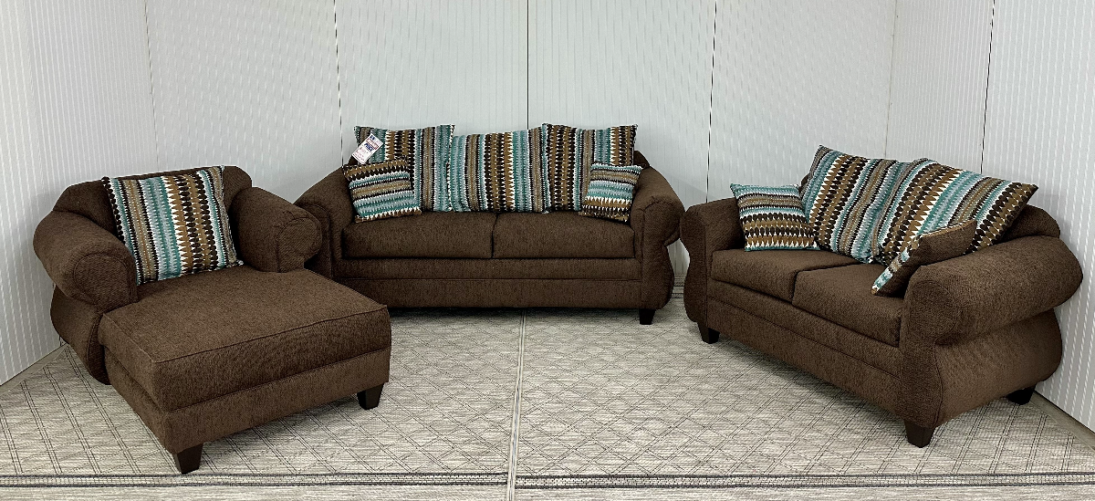 Faith Del Ray Sofa, Loveseat, and Chaise Set in New Bark