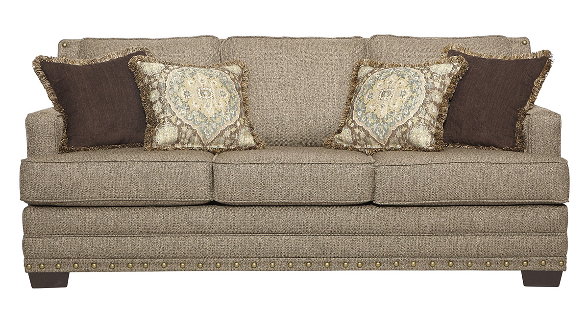 Hughes Furniture Sofa and Loveseat with reversible cushions and nail head accents in contemporary style. Available in Malibu Canyon. Sofa and loveseat sold as a set only. AVAILABILITY VARIES DAILY.Read More