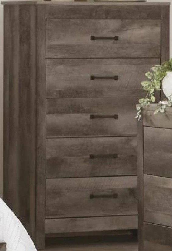 The Langston chest of drawers features hardware handles, clean lines and 5 drawers for storage. CHEST ONLY. May be purchased in matching bedroom set. Bedroom set includes bed (headboard, footboard, and side rails), dresser with mirror, chest, and nightstand. AVAILABILITY VARIES DAILY.Read More