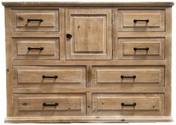 This dresser is a functional and stylish piece that adds warmth and character to any bedroom. The eight drawers and one door of this dresser with the rustic styling, add a touch of elegance and sophistication to the piece. With ample storage, this dresser is perfect for storing everyday items. Dresser may be purchased with matching bedroom set. AVAILABILITY VARIES DAILY.Read More