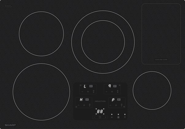 Sharp induction cooktops include a Residual Heat Indicator for each cooking zone that lets you know if a cooking zone is still hot.