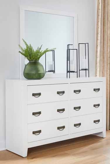 Are you a lover of casual contemporary style? Then mirror is perfect for you. The clean, white finish conveys an easy-breezy sensibility. Durable, sleek and stylish, it graces your space with timeless appeal. MIRROR ONLY. Dresser and mirror also available in matching bedroom set. Bedroom set includes bed (headboard, footboard, slats, and side panel rails), dresser with mirror, chest, and nightstand. AVAILABILITY VARIES DAILY.Read More