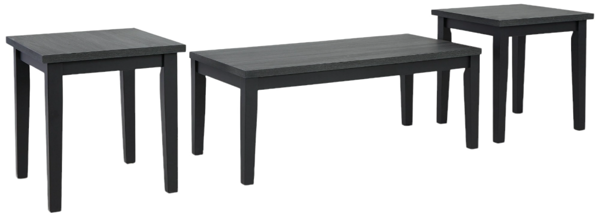 Take a turn toward the contemporary with this 3-piece occasional table set. The urban-chic dark charcoal gray tops exude modern flair, while sleek black frames with tapered legs keep things simple. Heat-, scratch- and water-resistant melamine gives this table set a durable design that will up your style game for years to come. AVAILABILITY VARIES DAILY.Read More
