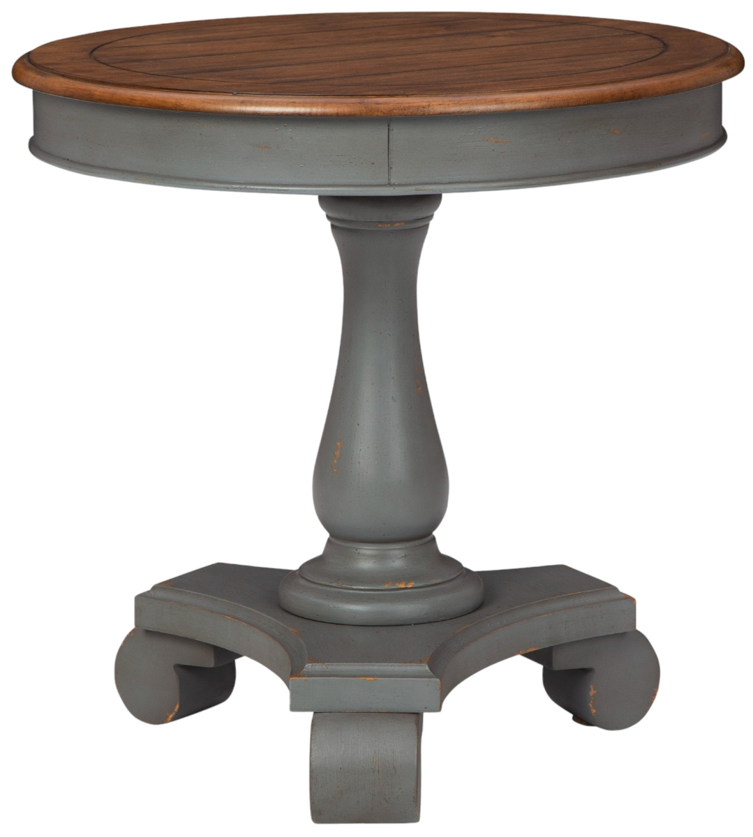 Accent table. Constructed of veneers, solid and engineered woods in antique gray and brown finishes. AVAILABILITY VARIES DAILY.Read More