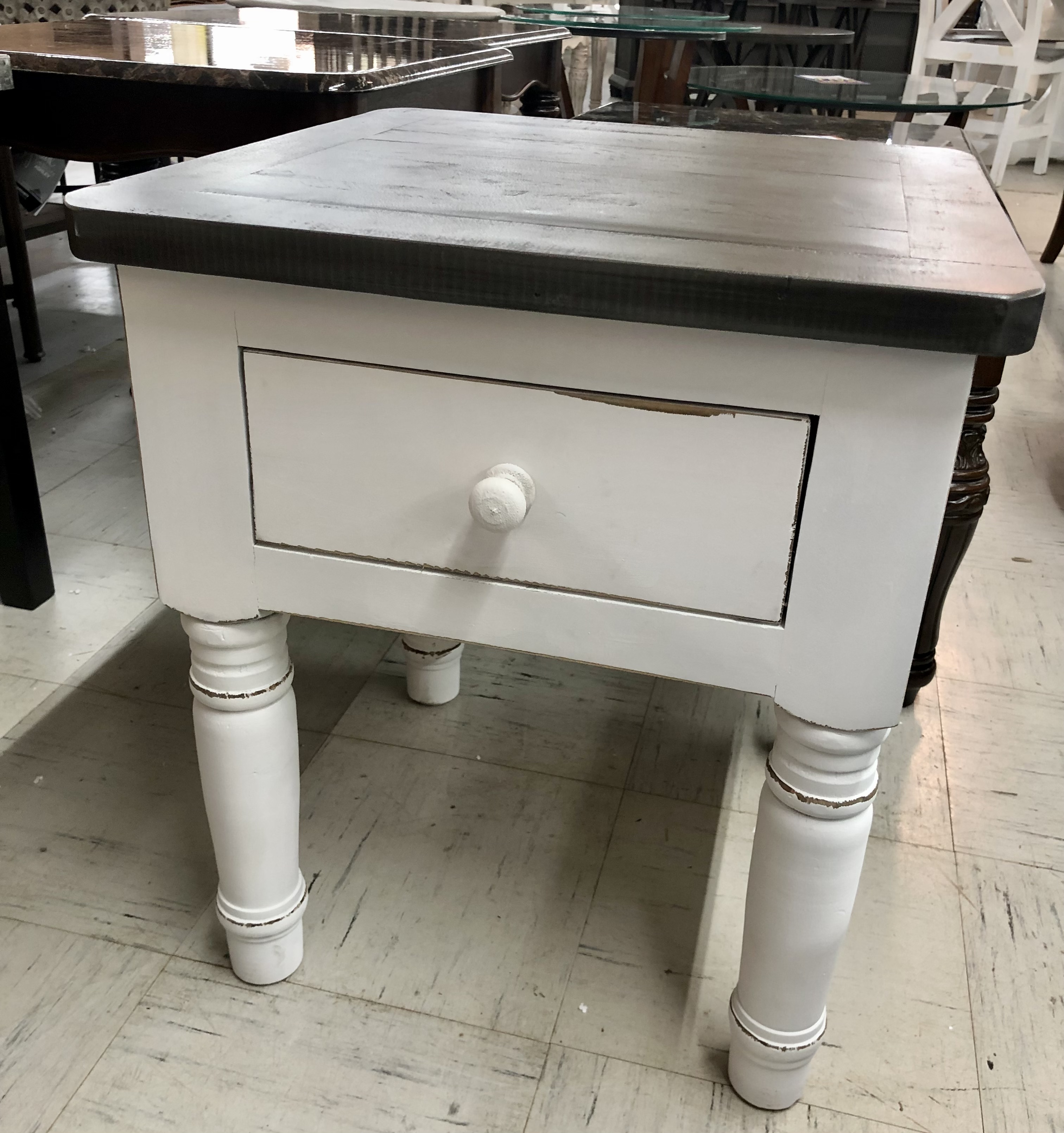 Solid wood. Single-drawer storage. Grey over antique white. AVAILABILITY VARIES DAILY.Read More