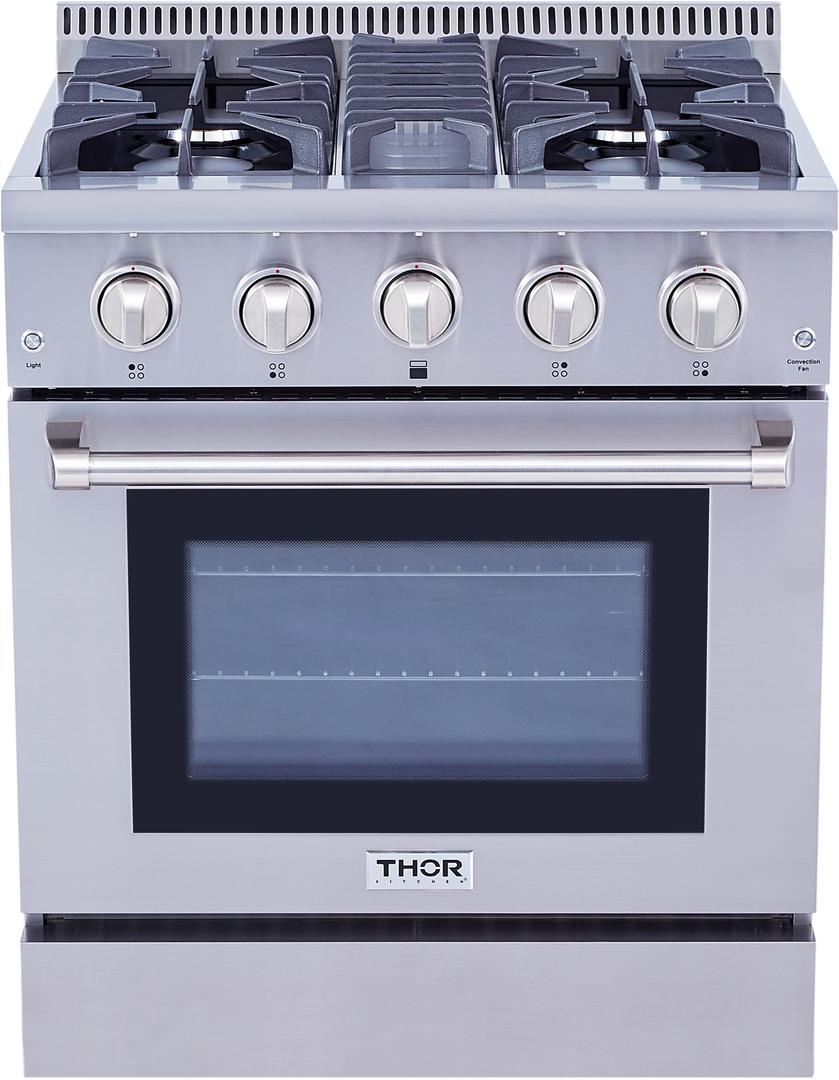 A 30 inch dual fuel range featuring a 4-burner cooktop, electric oven, electric broiler and a beautiful stainless steel finish. Thor Kitchen offers the privilege of utilizing both gas and electricity within the same product. Cook with power and bake with accuracy. Control your cooking destiny. AVAILABILITY VARIES DAILY.Read More
