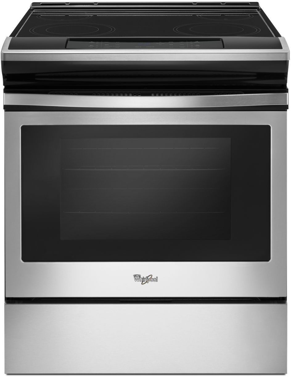 Whirlpool® 30" Slide In Electric Range-Black On Stainless with 4.8 cu. ft. total capacity, guided cooktop controls and temperature sensor. AVAILABILITY VARIES DAILY.Read More